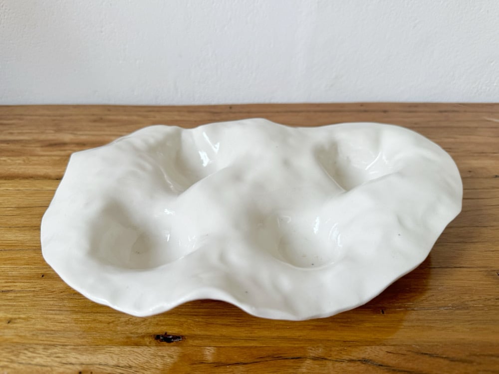 White wavy dish glazed in a clear gloss.